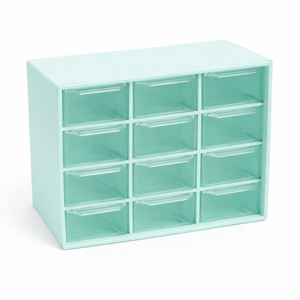 CAJA PLASTICA 12 DIVISORIOS VERDE PASTEL ALTO 15 CM ANCHO 18 CM PROFUNDIDAD 9.5 CM ( EMC 3.2)