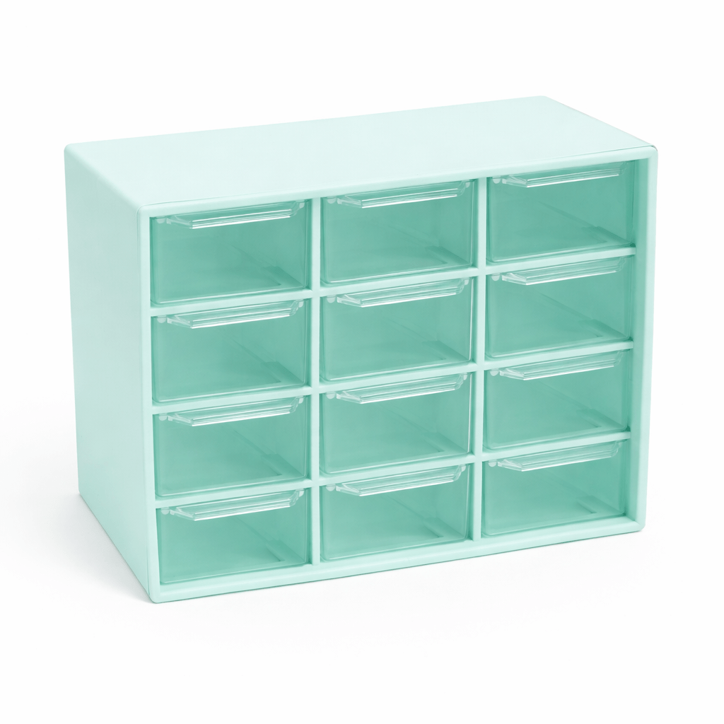 CAJA ORGANIZADORA PLASTICO VERDE PASTEL / 12 CAJONES ACRILICO (EMC 3-1)