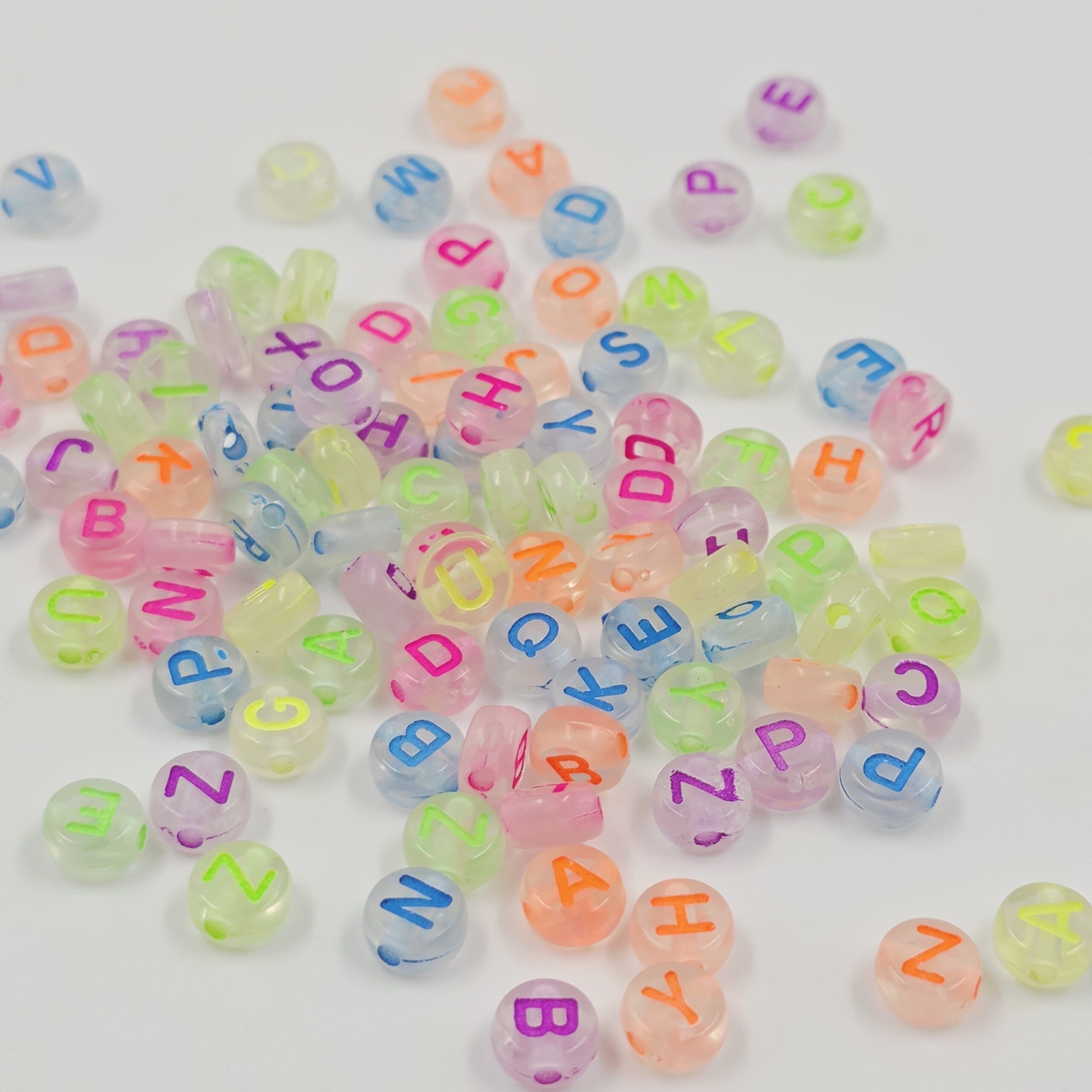 BOLSA CUENTA PLANA ABECEDARIO 7MM BRILLA EN LA OSCURIDAD. X 500 GRS (21-2-2)
