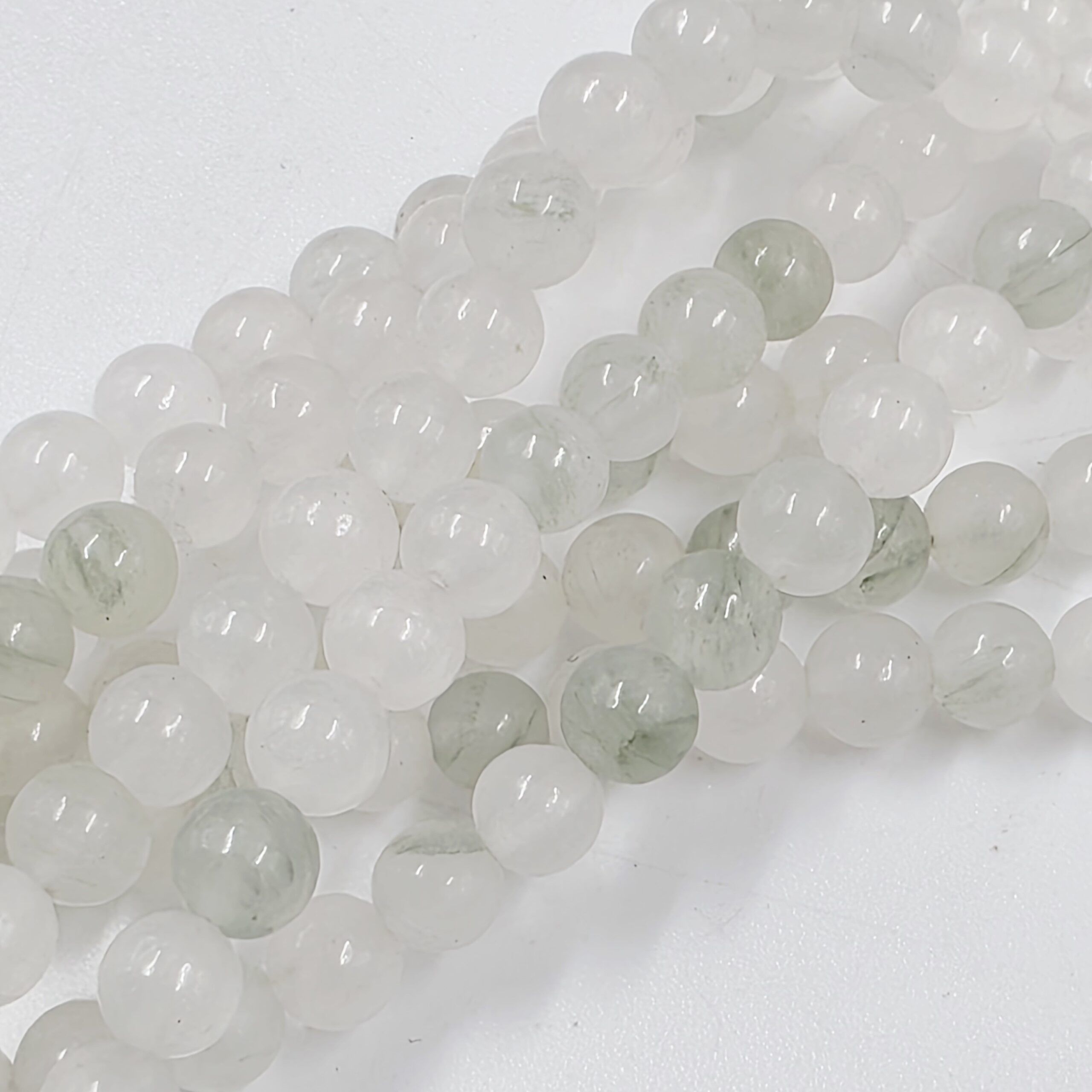 PIEDRA NATURAL CUARZO BLANCO/CLORITA VERDE AGUA BOLITA 6MM X TIRA 38 CM (25-15-2)