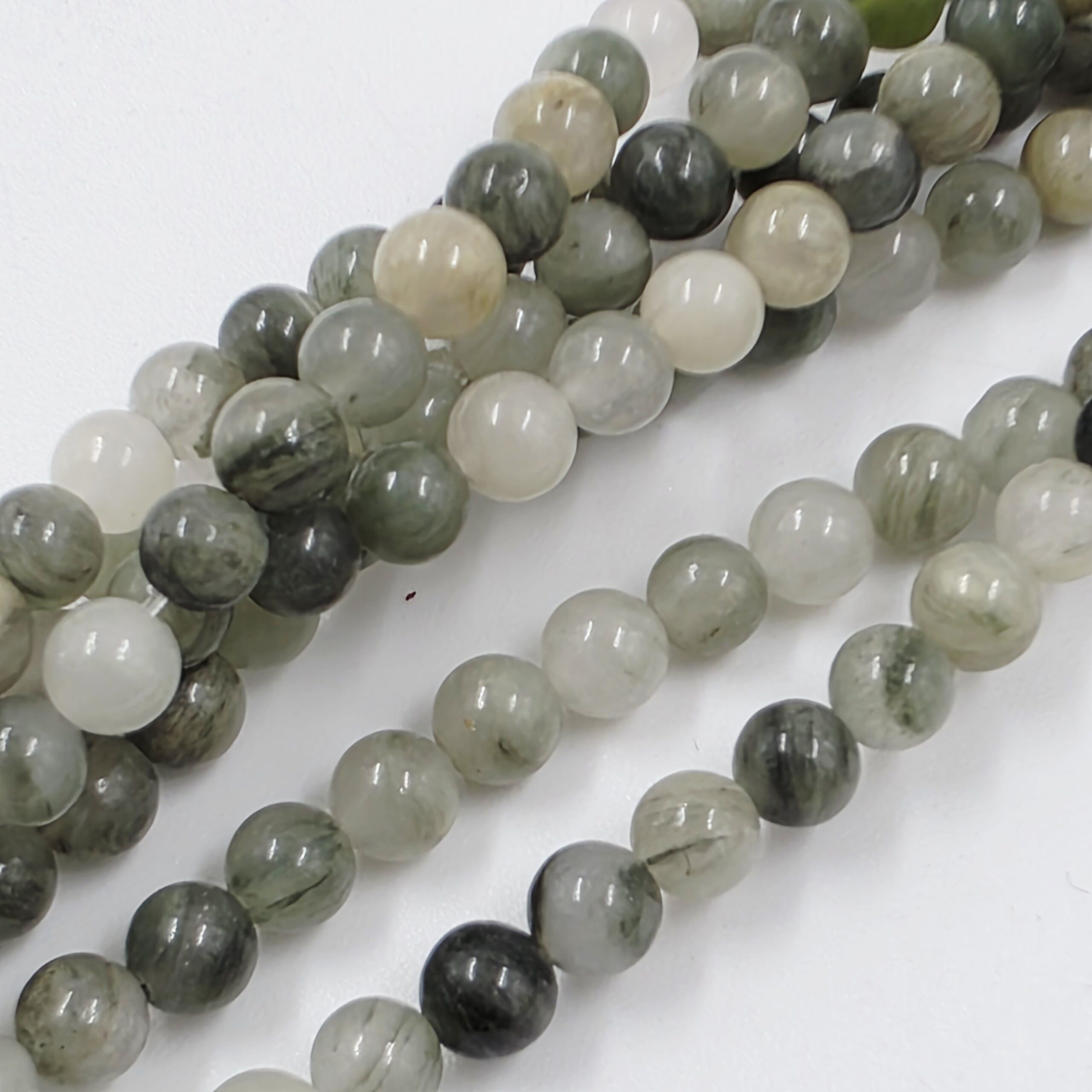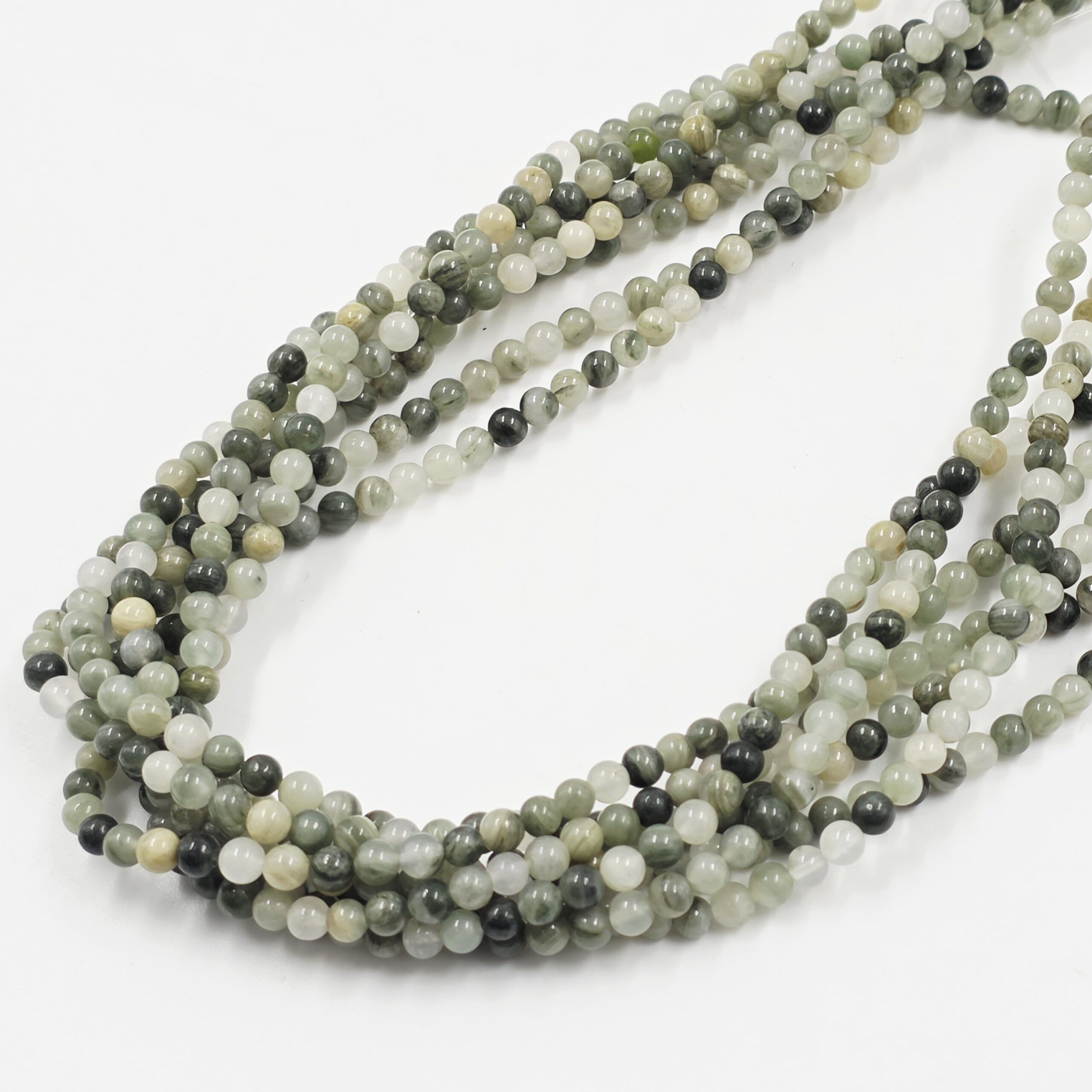 PIEDRA NATURAL CUARZO RUTILADO VERDE GRIS, BOLITA 4MM X TIRA 38CM (EMC 5-12-1)