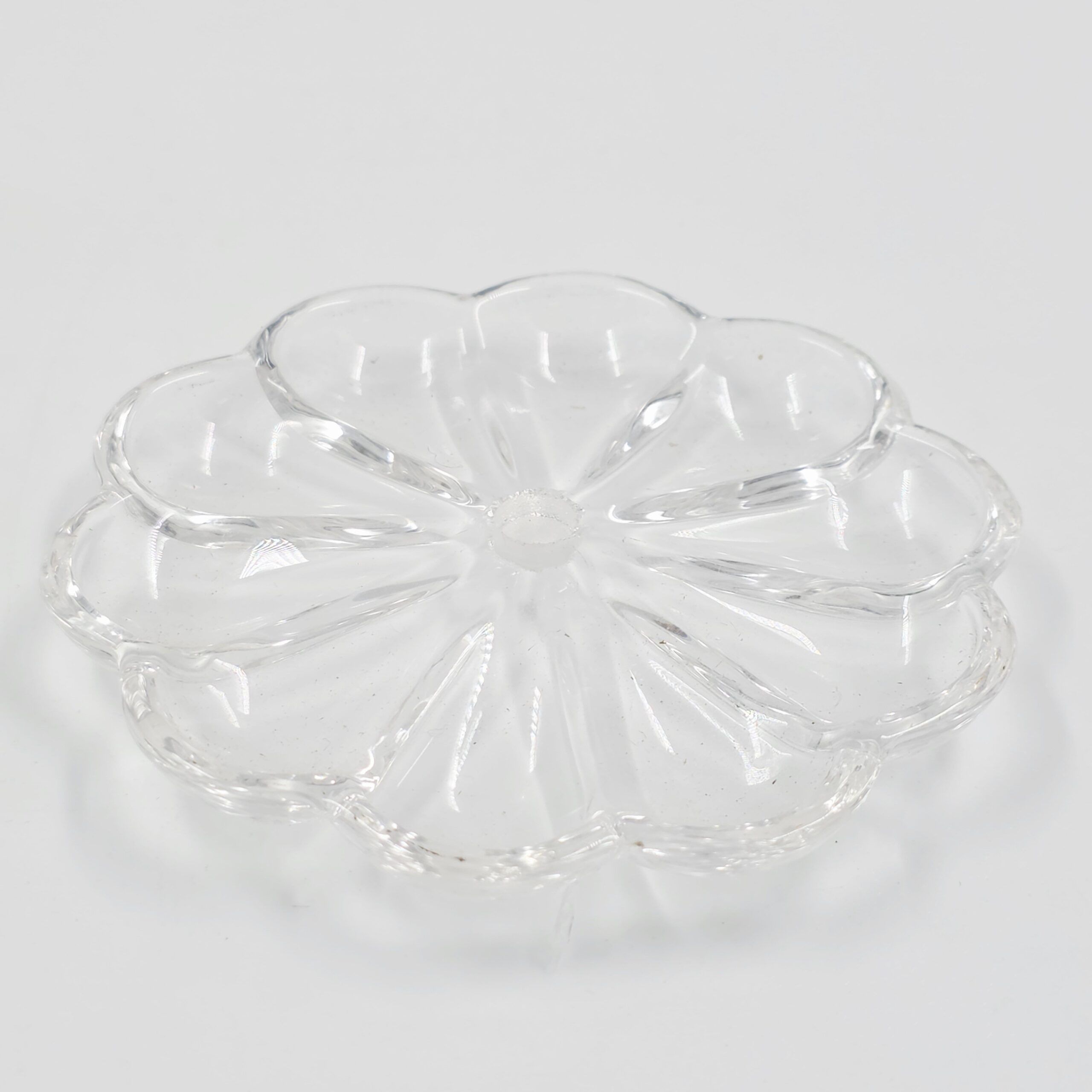 PLATILLO DE VIDRIO TRANSPARENTE 8 CM CON AGUJERO CENTRAL.
