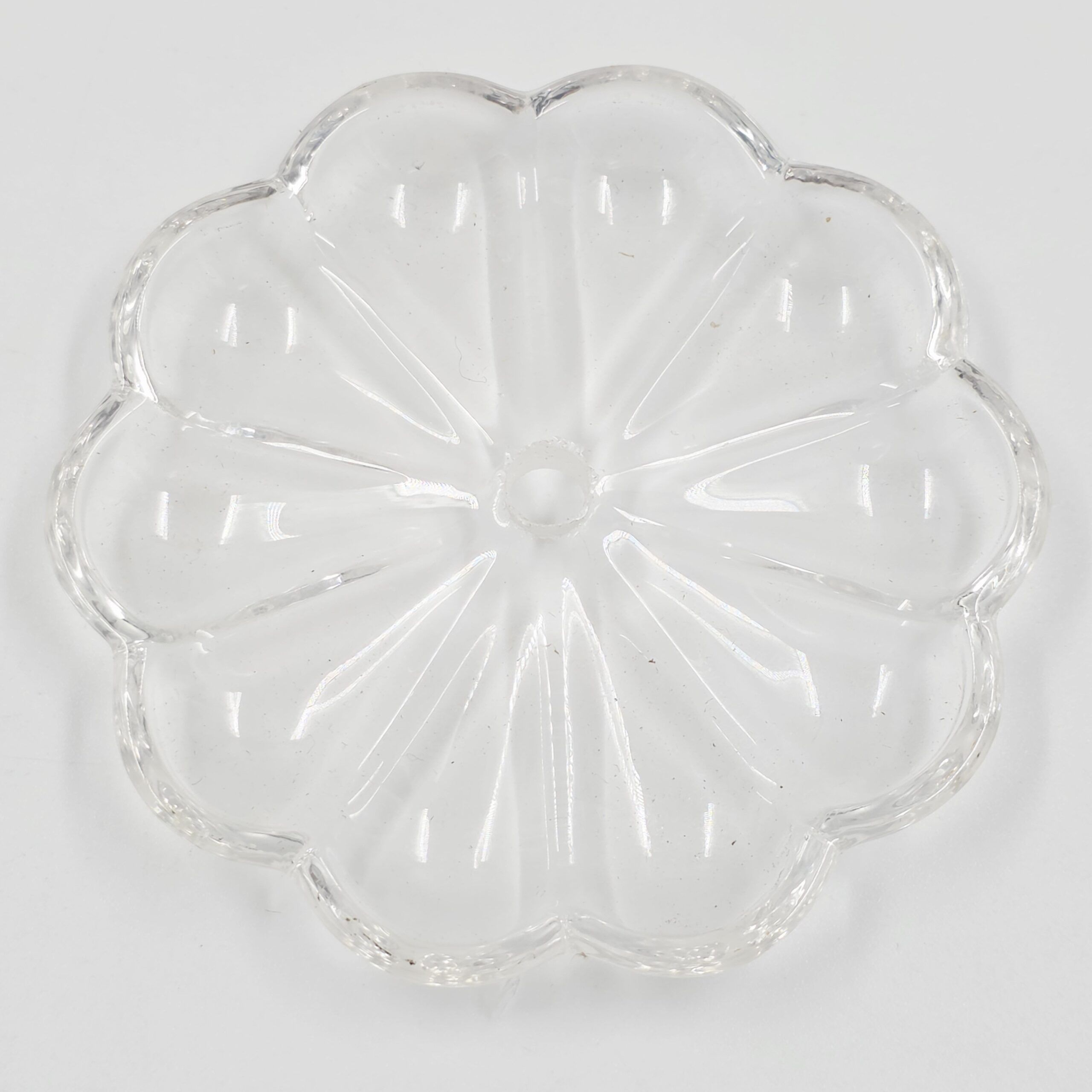 PLATILLO DE VIDRIO TRANSPARENTE 8 CM CON AGUJERO CENTRAL. X 320 UNIDADES.