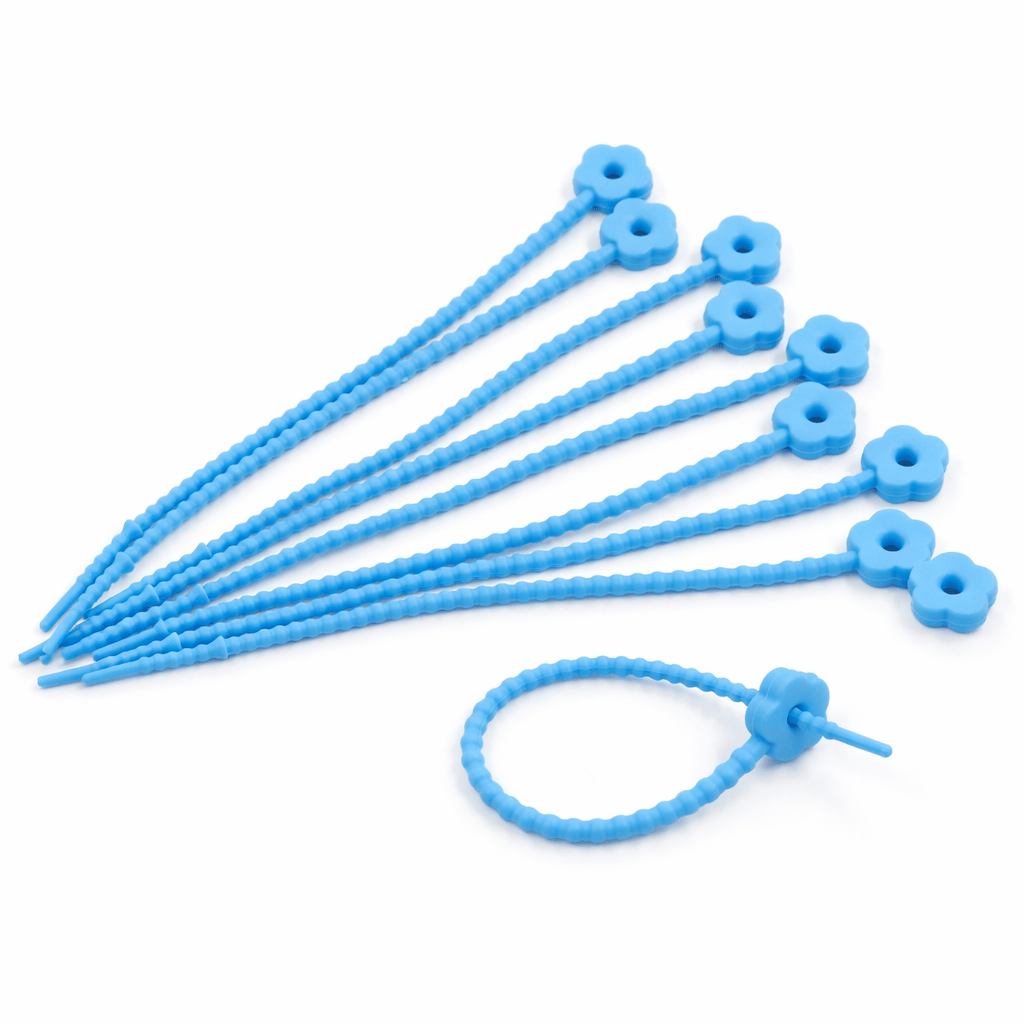 PRECINTOS SILICONADOS FLOR CELESTE DE 21CM X 10 UNIDADES (EMC 1-9)