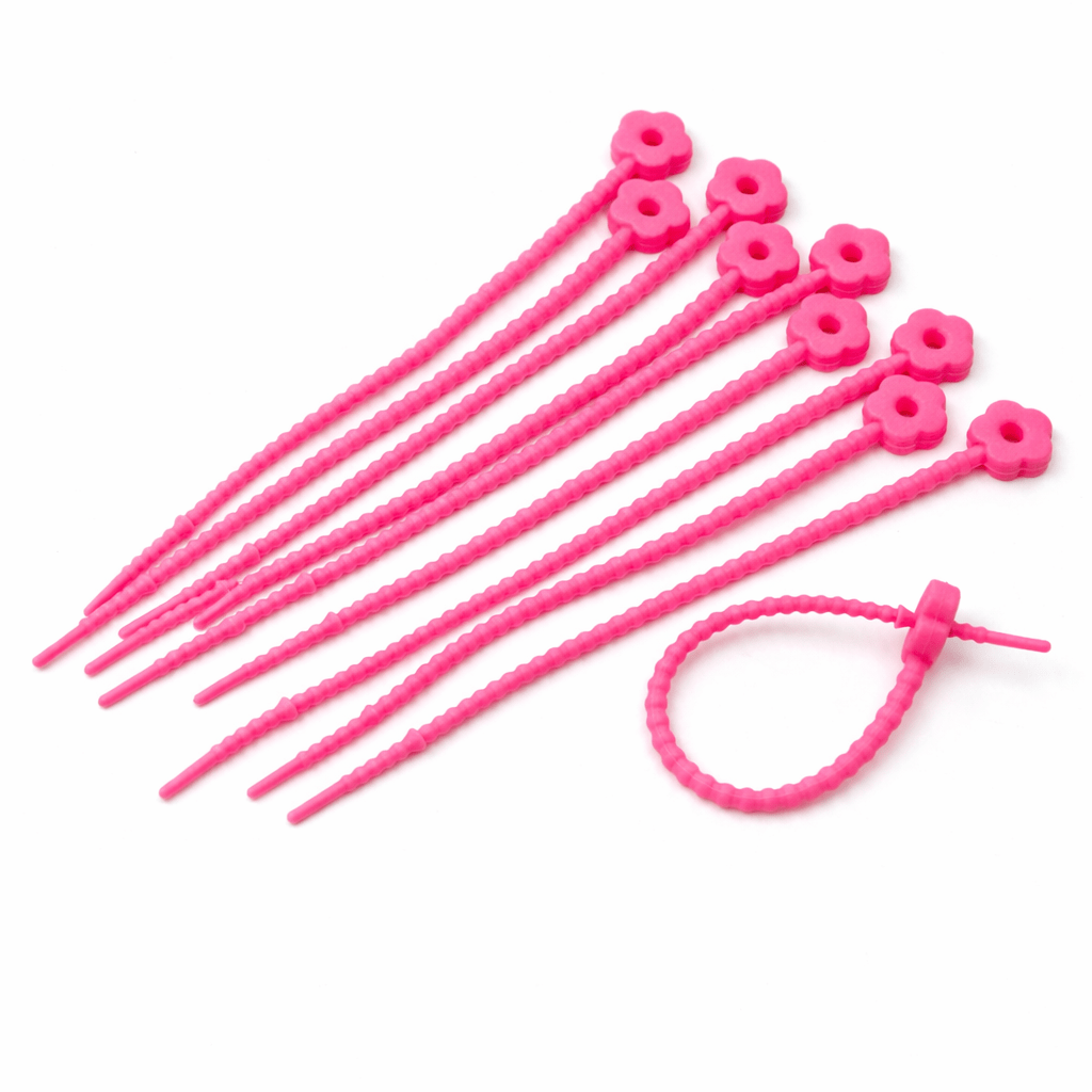 PRECINTOS SILICONADOS FLOR FUCSIA DE 21CM X 10 UNIDADES (EMC 1-9)