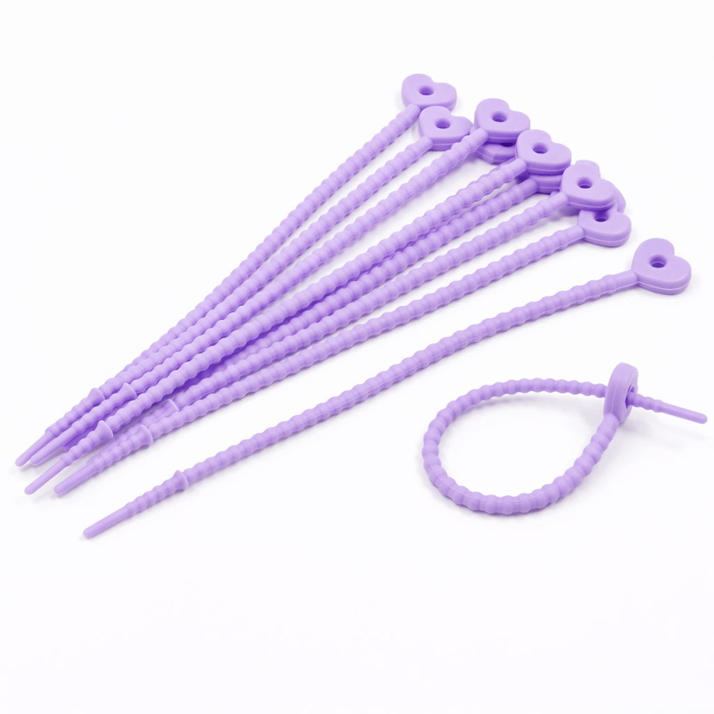 PRECINTOS SILICONADOS CORAZON LILA 21CM X 10 UNIDADES (EMC 1-7)