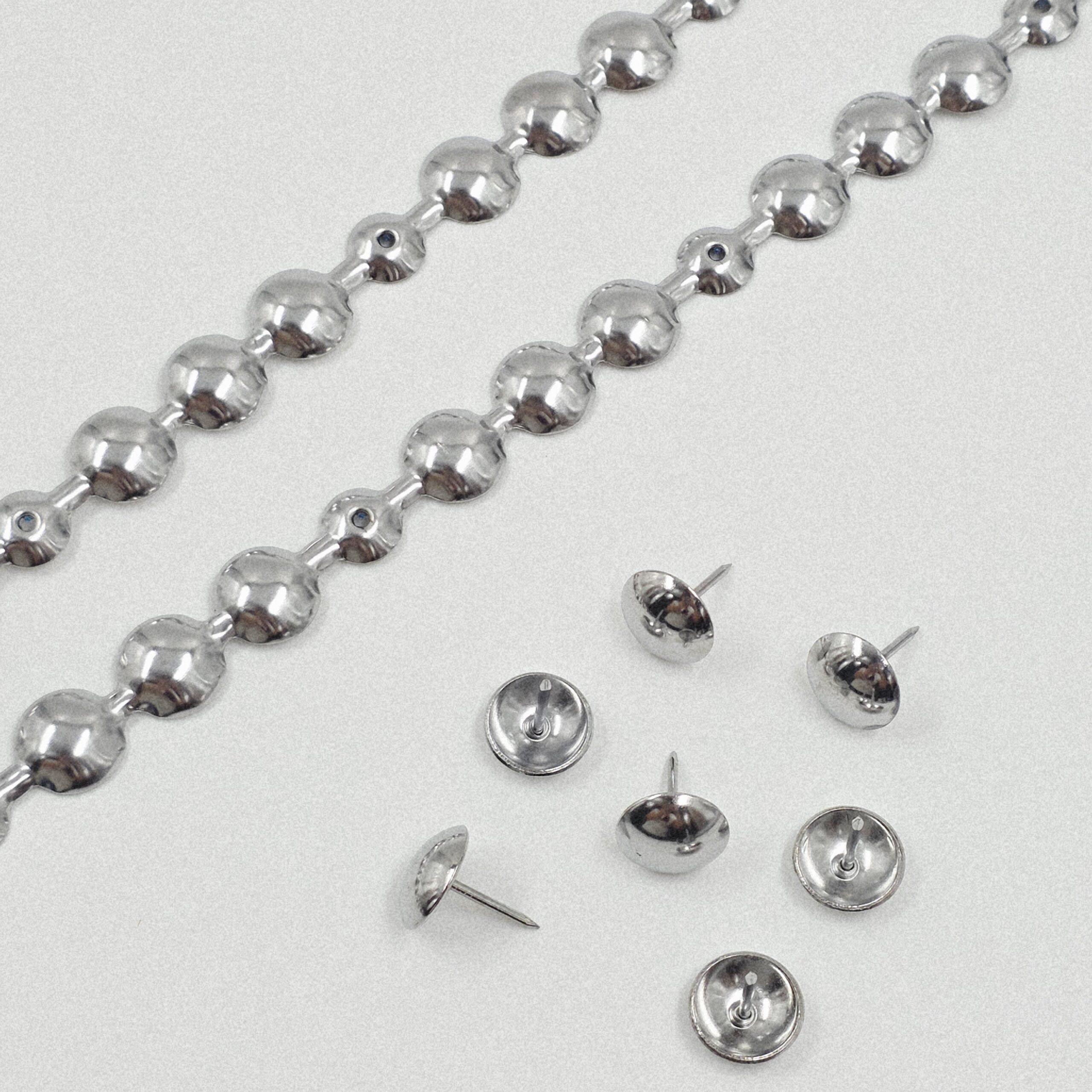 TIRA DE TACHAS NIQUEL 16MM X 1 METRO CADA TIRA.PACK X 25 MTS MAS TACHAS PARA COLOCACIÓN.