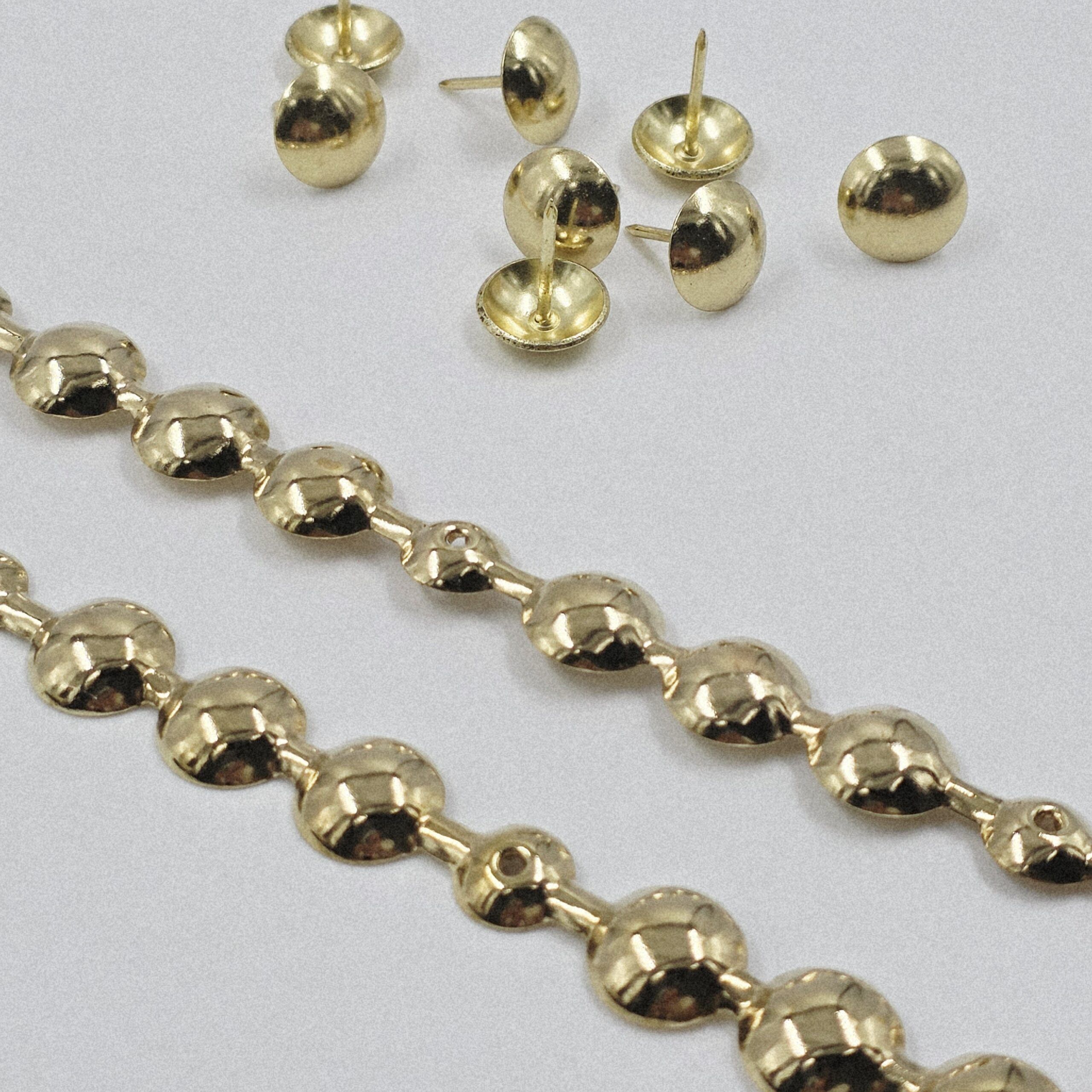 TIRA DE TACHAS BRONCE 16MM X 1 METRO CADA TIRA.PACK X 25 MTS MAS TACHAS PARA COLOCACIÓN.