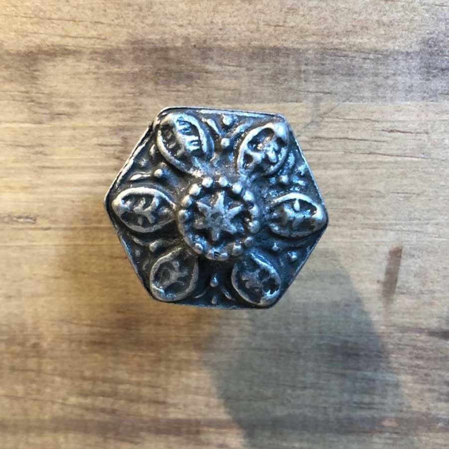 tirador botón flor plata 4058